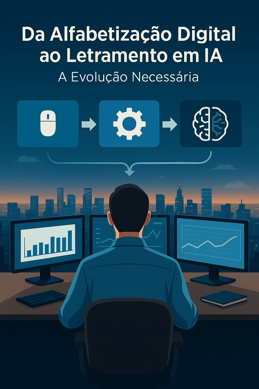 Imagine um professor que domina todas as ferramentas digitais: cria apresentações impecáveis, gerencia turmas online com maestria, utiliza plataformas de colaboração sem hesitação. Ele se considera “alfabetizado digitalmente”. No entanto, ao se deparar com um aluno apresentando um trabalho gerado por Inteligência Artificial (IA), ou ao tentar usar um chatbot para planejar uma aula, ele se sente perdido, incapaz de avaliar a qualidade, identificar vieses ou sequer formular um prompt eficaz. Essa lacuna revela uma verdade incômoda: as competências digitais que nos serviram bem por décadas já não são suficientes. A ascensão vertiginosa da Inteligência Artificial exige uma nova forma de interação com a tecnologia, um novo nível de compreensão e, acima de tudo, um novo tipo de letramento. Não basta mais saber “usar” a ferramenta; é preciso saber “dialogar” com ela, “questioná-la” e “co-criar” de forma ética e crítica. Estamos testemunhando uma ruptura, uma evolução necessária que nos leva